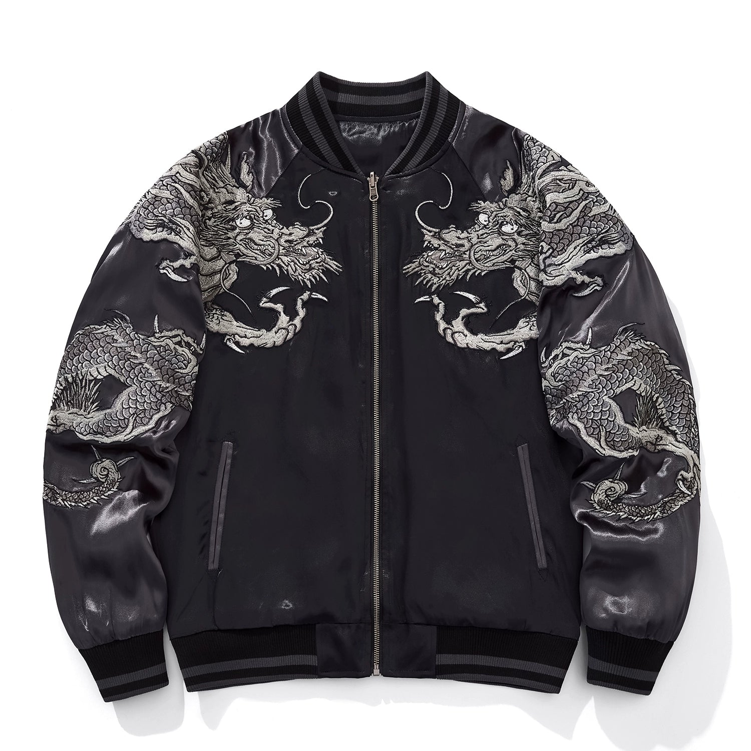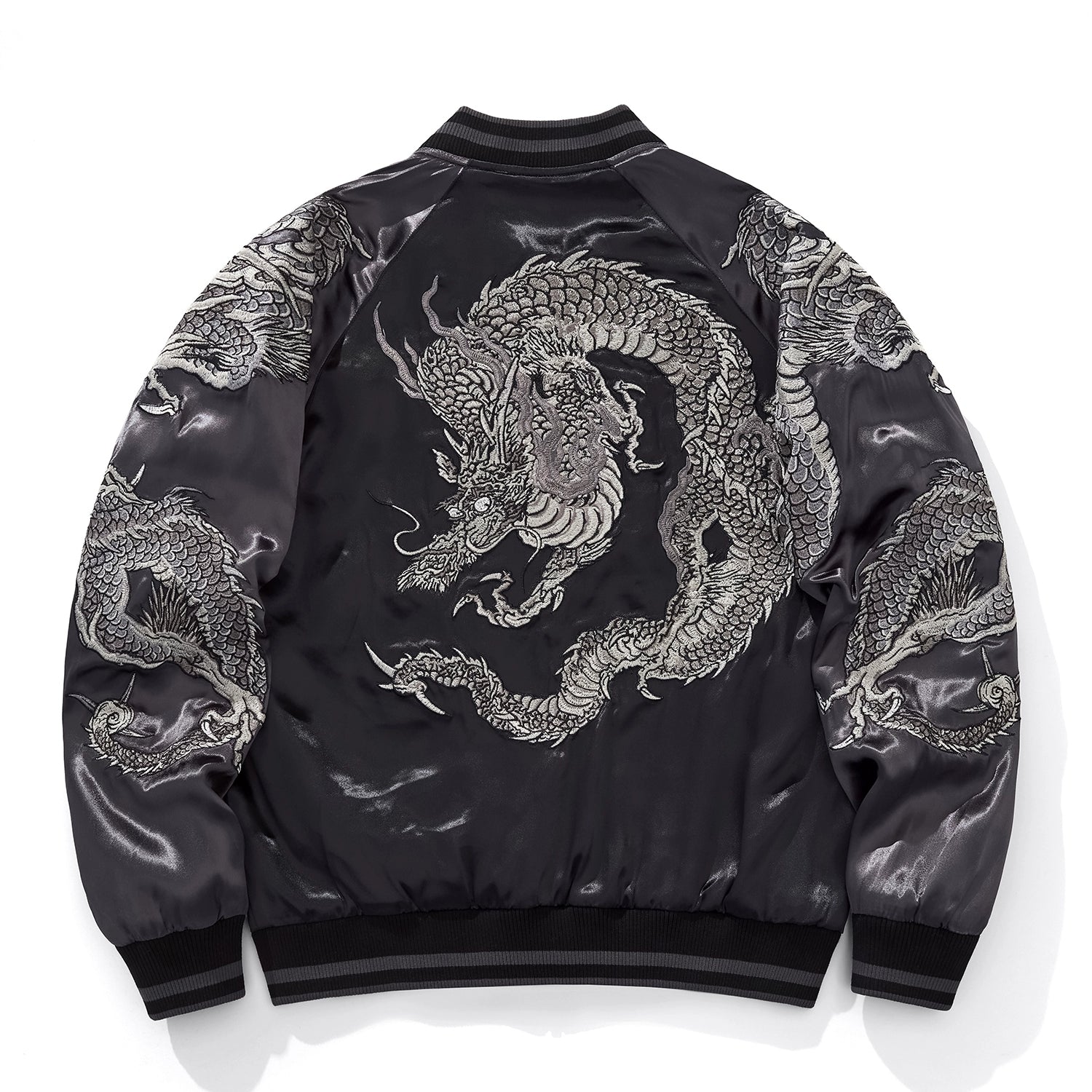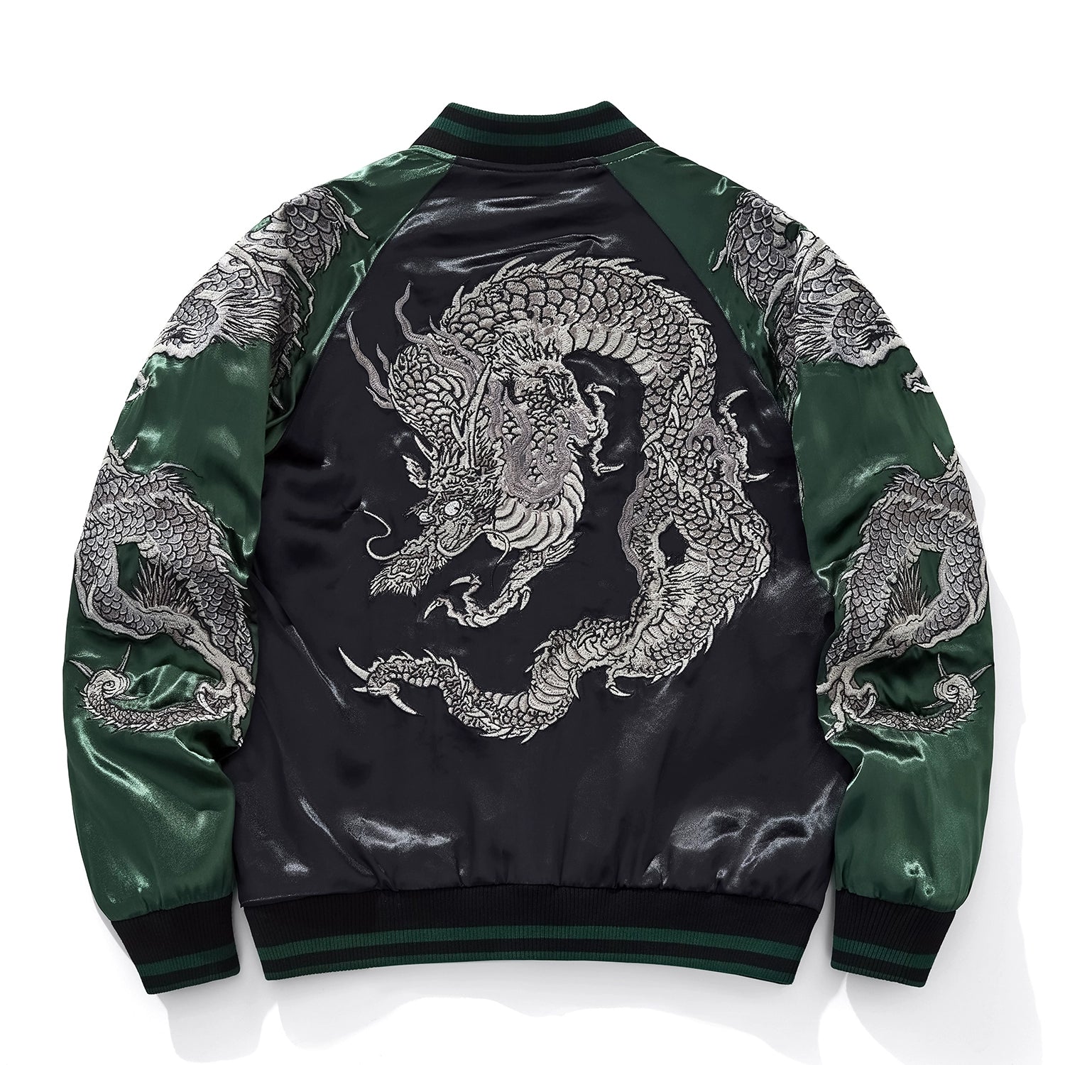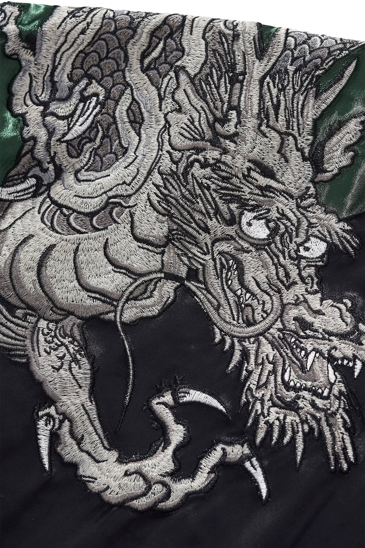 The Seiryuu Sukajan captures the spirit of the Azure Dragon — guardian of the East and symbol of protection, wisdom, and renewal in Japanese mythology. Its form coils across the satin surface in dense, metallic embroidery, embodying strength restrained by serenity. Every scale and curve is rendered with layered precision, reflecting the balance between elegance and dominance.